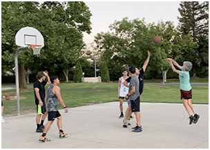 The voice startles me. I blink and wipe sweat from my forehead. On my left, a few yards away, stands a skinny guy, mid-thirties, wearing a Pistons t-shirt and holding a ball on his hip.